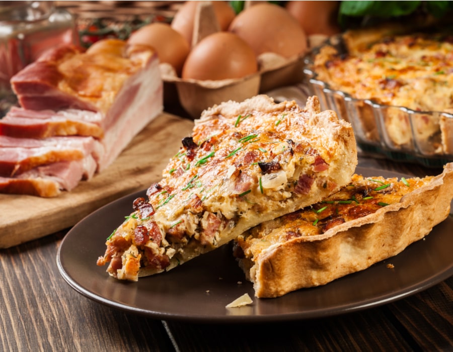Quiche is a traditional French open pie. There are many variations of Quiche, the peculiarity lies in the preparation of a base of shortbread dough and a sauce of a mixture of eggs, cream/milk, and cheese.
